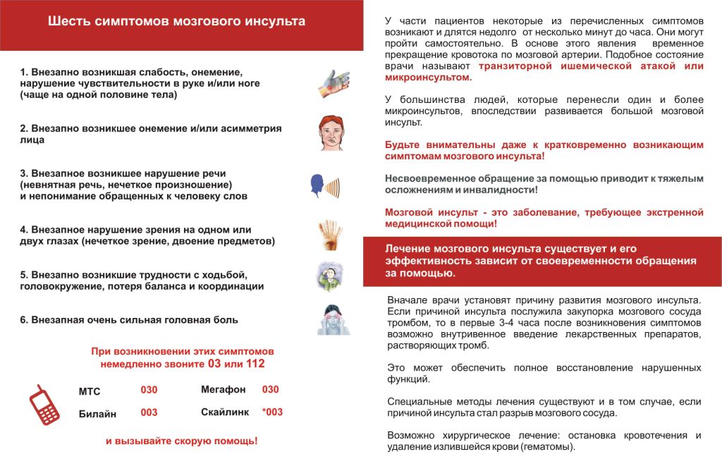 Памятка "Вместе против мозгового инсульта". Разработано Федеральным центром здоровья.