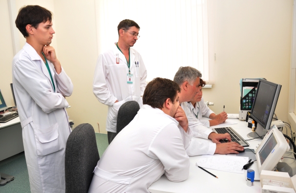 16.08.11 г. в ГАУЗ РТ БСМП был проведен мастер-класс контрастной магнитно-резонансной томографии. Мастер-класс, в котором принимали участие специалисты рентгеновского отделения БСМП, провел Панов В.О. – ведущий научный сотрудник рентгенологического отделения НИИ Клинической онкологии РОНЦ им. Н.Н. Блохина, доцент кафедры лучевой диагностики и мед. физики РМАПО, г. Москва.